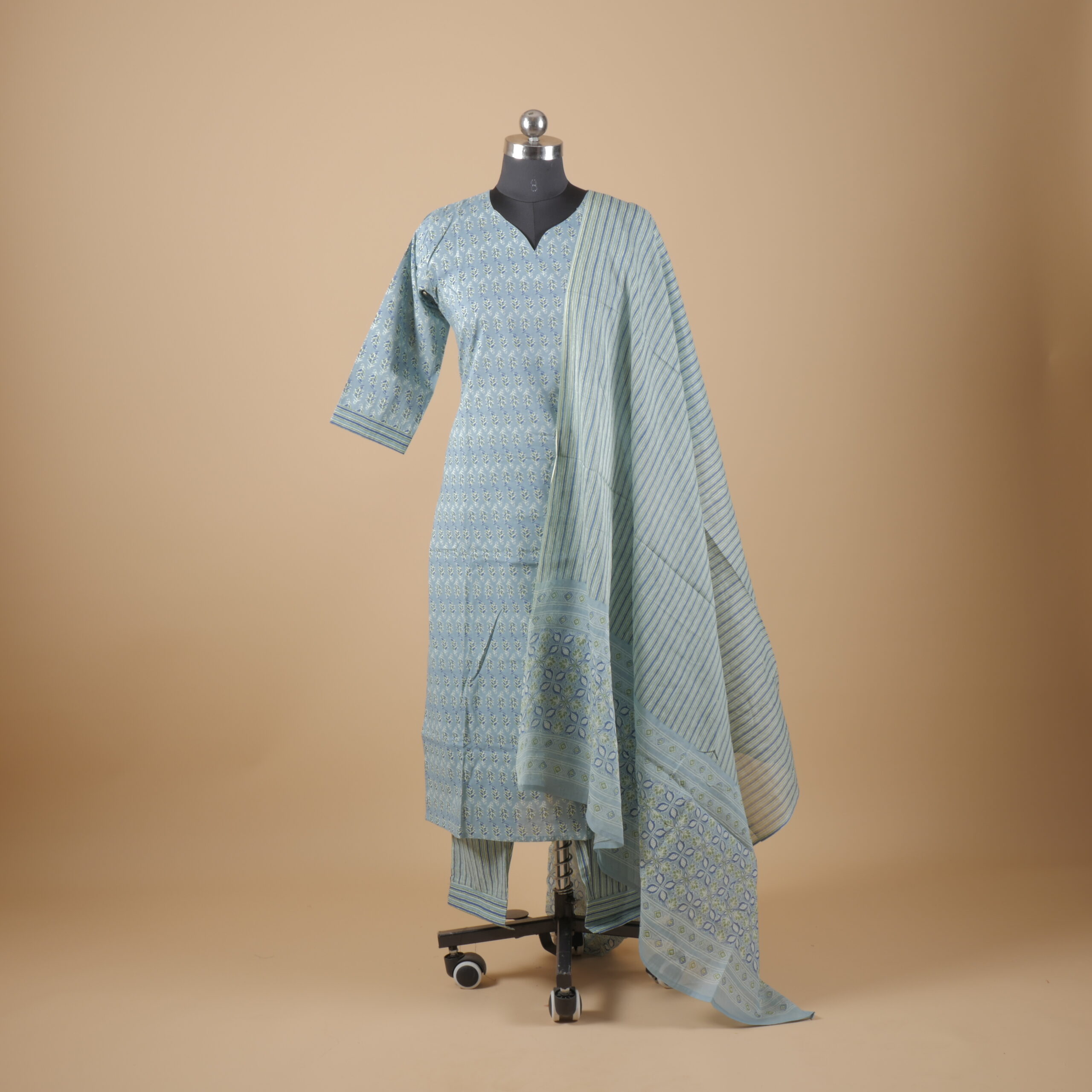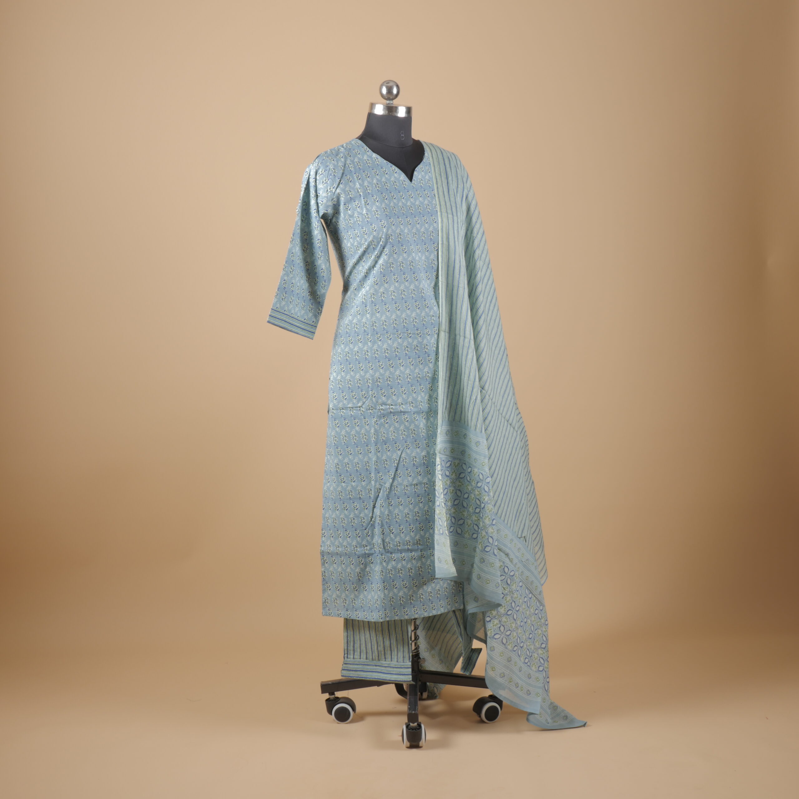 Blue Printed Straight Pants Suit Kurtha (3Pcs) quantity